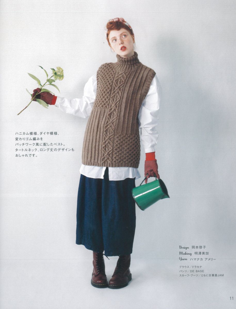 72212 棒針で編む 毎日着たい アラン模様のベスト